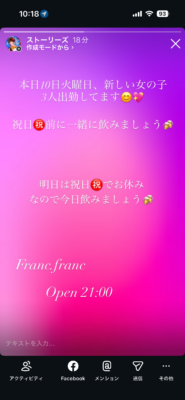 お給料は日払い&週払いOK・バックあり等、稼げるシステムを整えています。未経験者さん大歓迎・副業OKなので本業と両立しやすい環境です。もちろんレギュラースタッフも大歓迎です!シフトのことは、何でもご相談ください。他店からの移籍・ブランクのある方も頑張りがぐーんとお給料UPにつながります。「今よりもいい待遇のお店で働きたい」そんな方はぜひラウンジFranc.francへ!